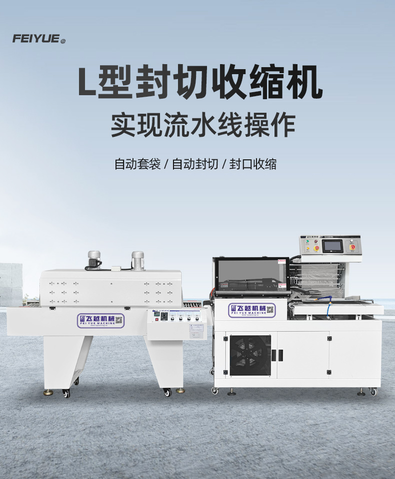 L型全自動(dòng)封切機(jī)(觸摸屏),后接根據(jù)POF膜特性而設(shè)計(jì)研發(fā)的雙風(fēng)機(jī)熱收縮機(jī),以POF熱收縮膜為包裝材料,對(duì)商品進(jìn)行自動(dòng)套膜封切并自動(dòng)輸送到熱收縮機(jī)進(jìn)行熱收縮包裝,通過(guò)螺旋風(fēng)技術(shù)將加熱管產(chǎn)生的熱量用強(qiáng)勁的風(fēng)力使其均勻散布于整個(gè)發(fā)熱倉(cāng)內(nèi)并傳送到收縮膜表面,使收縮膜達(dá)到所需的溫度而發(fā)生熱收縮反應(yīng)迅速定型,加上外套玻璃纖維套管的輥筒會(huì)隨著輸送鏈條的運(yùn)行而勻速滾動(dòng),保證商品底部不會(huì)出現(xiàn)局部溫度過(guò)高而粘膜,解決底部難收縮的困擾,從而使商品收縮良好。