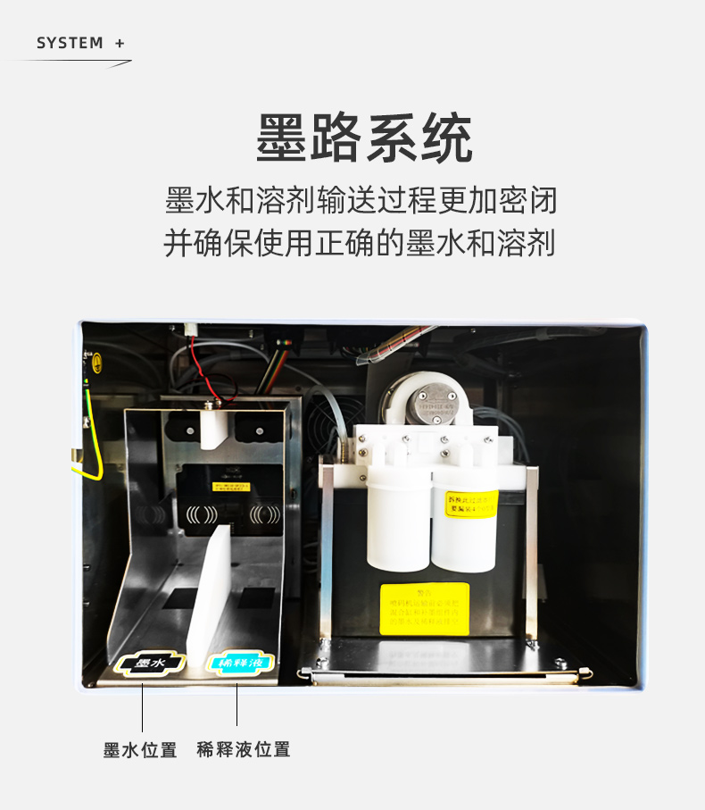 智能墨盒系統(tǒng),墨水和溶劑輸送過程更加密閉,并確保使用正確的墨水和溶劑。